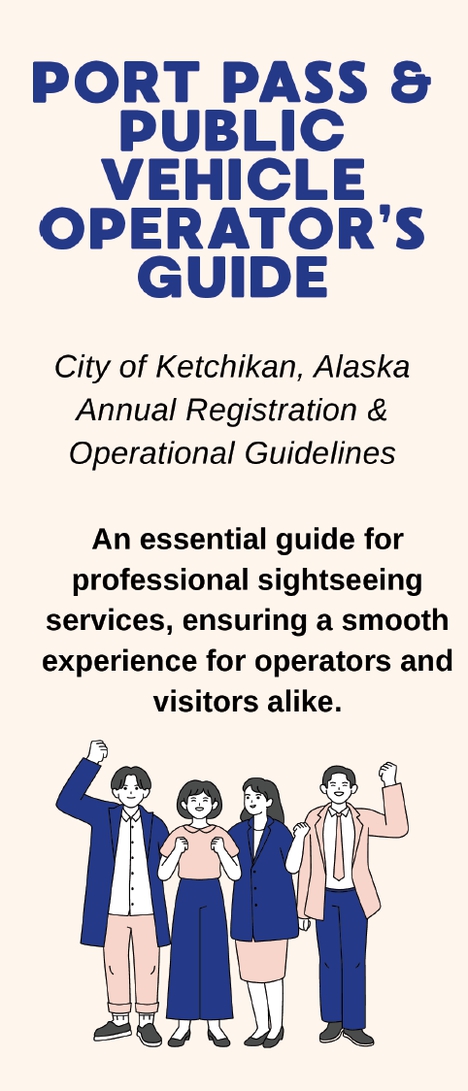 The City of Ketchikan Port & Harbors Department requires all vehicles utilizing the Port to obtain a port access pass, Ketchikan Municipal Code 13.08.155 PORT USE. Please obtain a public vehicle permit from the City Clerk's office before reaching out to Port & Harbors for a port pass. Contact Port & Harbors at (907) 228-5632 for more information.